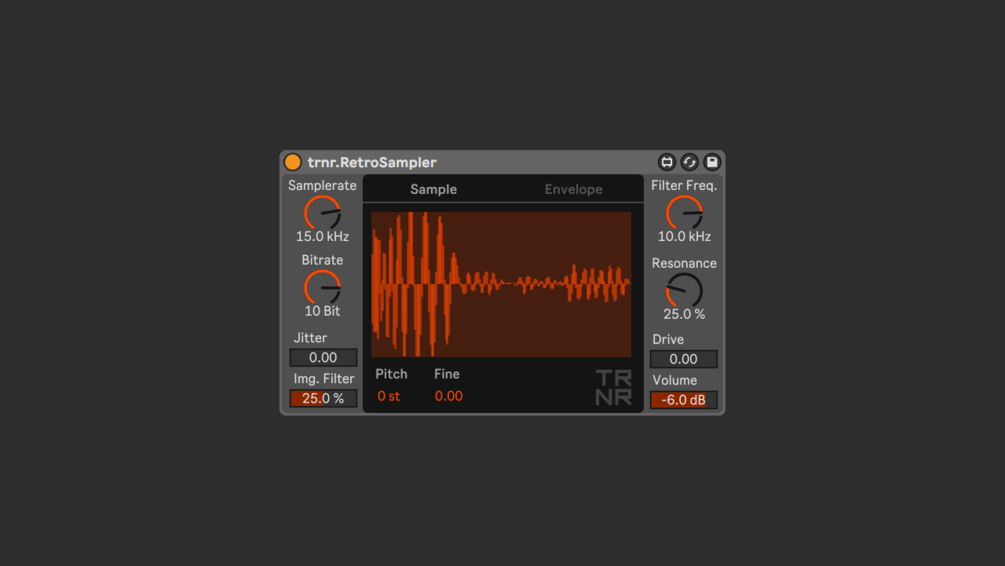 RetroSampler is a lo-fi sample player inspired by hardware samplers of the 90s. It features adjustable sample and bit rate, clock jitter control, low pass filter with drive control and a integrated ADSR envelope. Lowering the sample rate will introduce the sought-after "ringing" effect found in older samplers which is not just a simple decimation effect: the resampling algorithm accurately follows the transposed pitch without interpolation.
